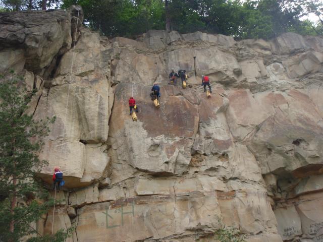 o trzytygodniowej przerwie spotkaliśmy się na kolejnych zajęciach kursowych. Nasz nowy "narybek" poznał kolejne tajniki poruszania się po linach i potrafi już zaporęczować jaskinię (a przynajmniej skałki w Rożnowie ;). Nie obyło się również bez małych wpadek, na szczeście niezagrażających życiu i zdrowiu. Dwa dni intensywnych ćwieczeń bynajmniej nie zniechęciły kursantów do taternictwa jaskiniowego i z nieceierpliwością oczekują następnych zajęć.